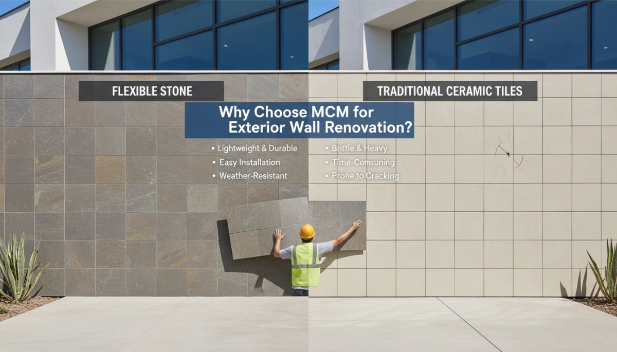 Flexibler Stein vs. traditionelle Keramikfliesen: Warum MCM für die Fassadensanierung? Eine Kostenanalyse