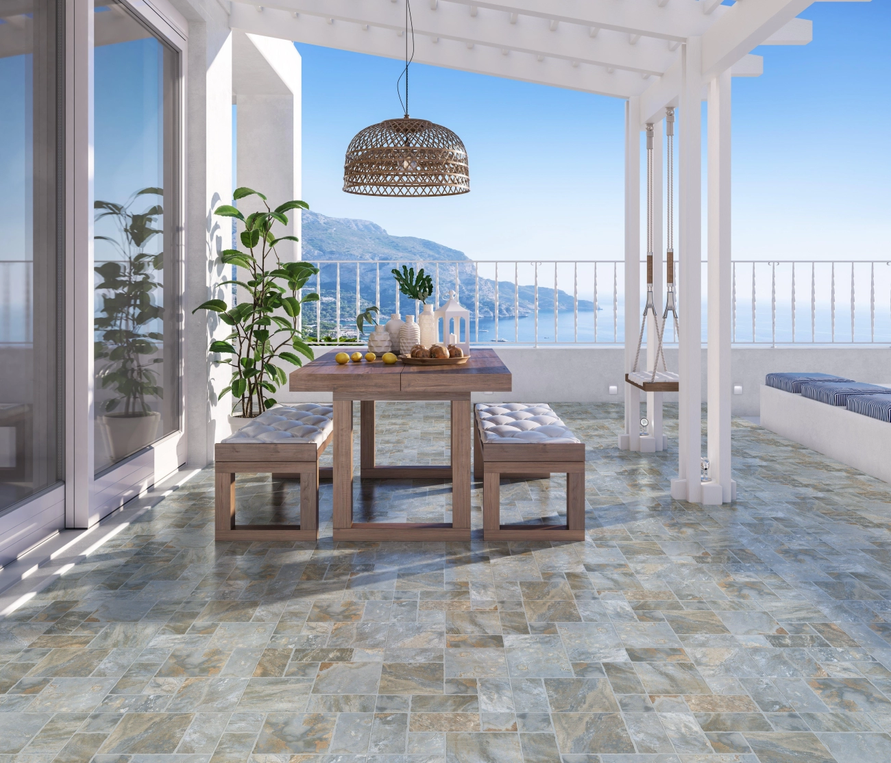 Superfici esterne devono resistere agli agenti atmosferici rimanendo sicure sia per i piedi nudi che per le scarpe. Le nostre soluzioni in porcellana sono progettate per: